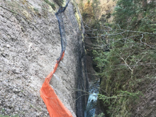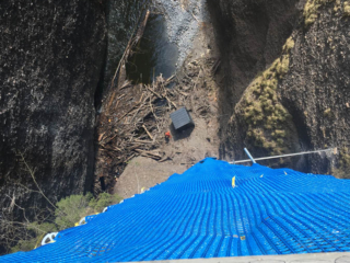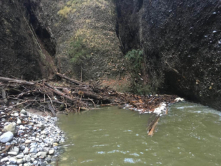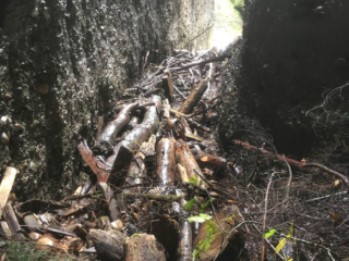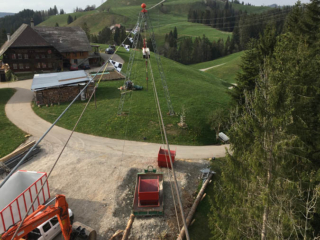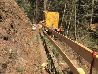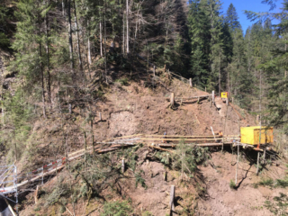 In der Räblochschlucht soll ca. 1700m3 Schwemmgut im Räbloch sowie die ca. 500 m3 Schwemmholz oberhalb des Räblochs mittels Schienenkran und Teleskopgreifarm aus der Schlucht entfernt werden.