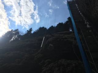 Für einen sicheren Zugang wurde ein rund 50 Meter hoher Gerüstturm gebaut.